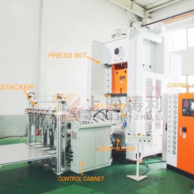 The press line ZL-T80/T130 is designed and developed specially for the aluminum food containers,dishes and trays production. From the decoiler to stacker ,from feeding to punching to stacking. Those aluminum foil containers can be obtained finally.